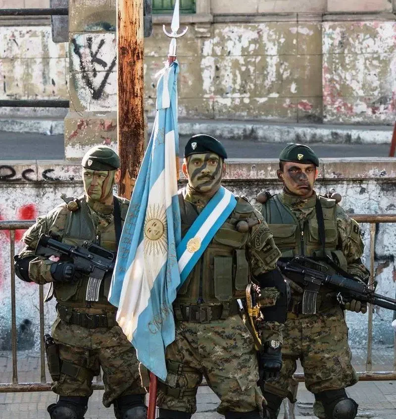 Аргентинские срочники, чувствуется, что парней учили бегать, чистить и мести...