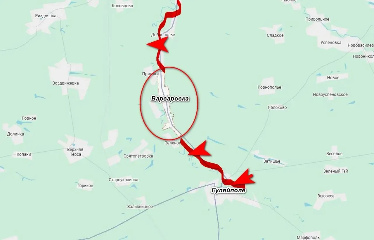 Российские войска продолжают проламывать оборону противника на реке Гайчур в Запорожской области, под контроль ВС РФ перешло село Варваровка на восточном берегу реки. Данный населенный пункт довольно большой и вытянут вдоль трассы Гуляйполе — Покровское. В селе противник выстроил мощную оборону, которая всё-таки не выдержала натиска российских войск.