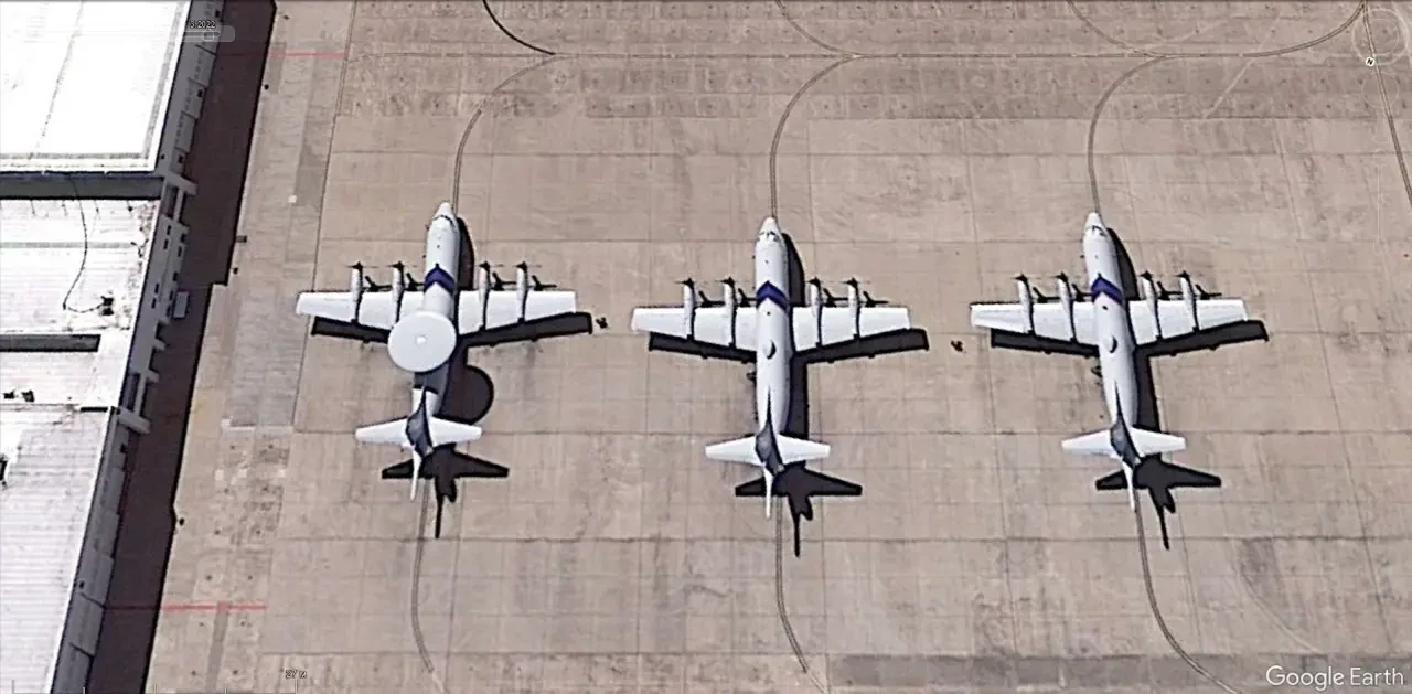 Спутниковый снимок Gооglе Eаrth: самолёт Lockheed EP-3E Aries II на авиабазе Патуксент-Ривер. Снимок сделан в июне 2022 года