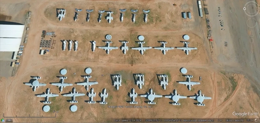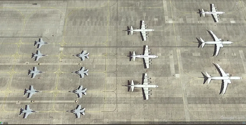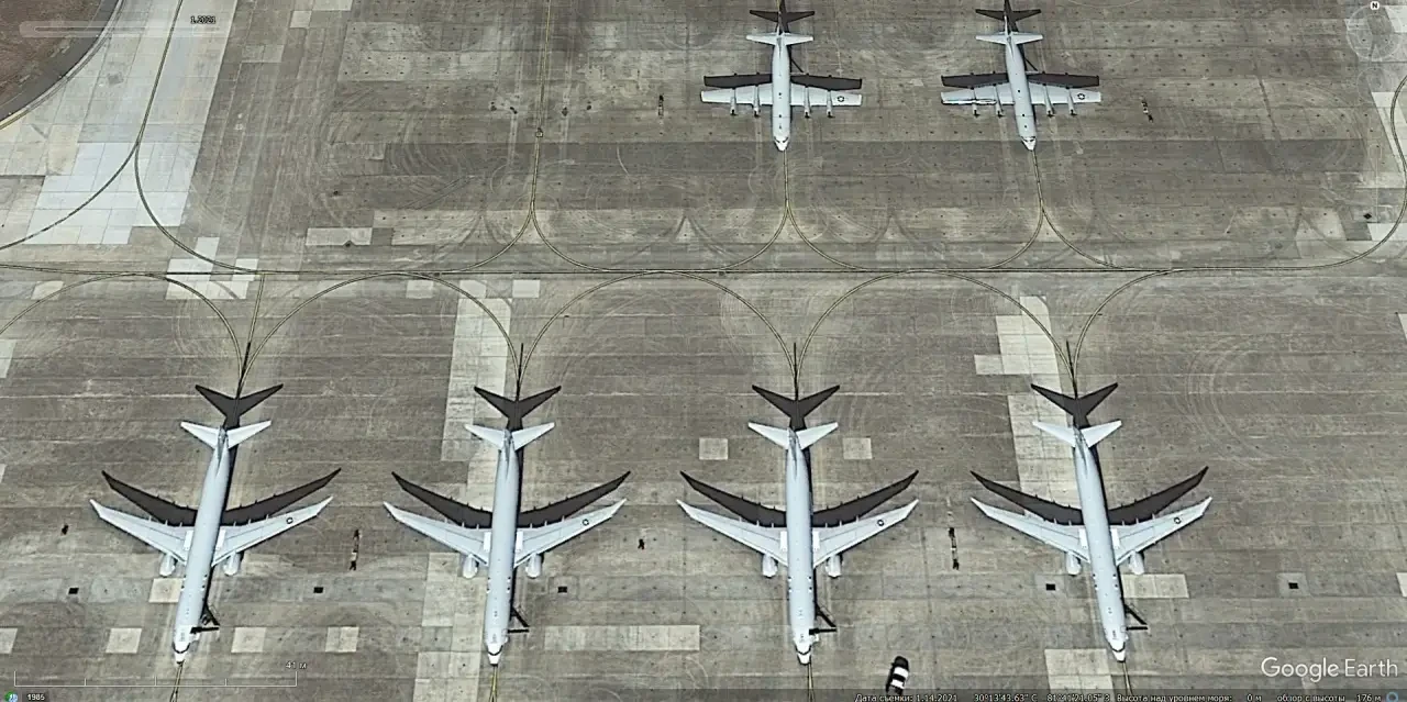 Спутниковый снимок Google Earth: самолёты Lockheed P-3 Orion на базе хранения Дэвис-Монтен