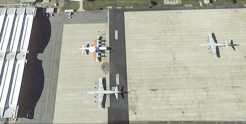 Спутниковый снимок Gооglе Eаrth: самолёты Lockheed NP-3D Orion и Lockheed P-3 AEW Orion на авиабазе Патаксент-Ривер