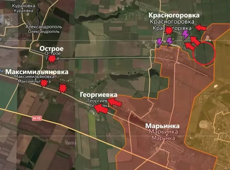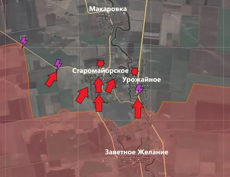 На Донецком направлении продвижение российских сил в Красногоровке и зачистка территорий. Идут бои в Урожайном и Старомайорском.