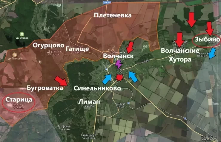 На Харьковском направлении группировка войск «Север» продолжает своё наступление. Под контролем войск РФ находятся населённые пункты Старица и Зыбино. В Волчанске идут тяжёлые бои, силы РФ на подходах к Липцам. Отмечаются удары по тыловым районам противника. Происходит переброска резервов ВСУ с других направлений.