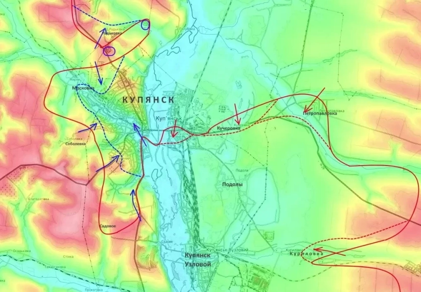 Вторая неделя здесь ознаменована непрекращающимися тяжелыми боями. Под мощным давлением численно превосходящего противника российские подразделения были вынуждены тактически отойти из населенного пункта Московка. Кроме того, зафиксированы попытки вклинивания украинских формирований на северо-западных и юго-западных окраинах Купянска.