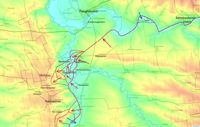 Российские бойцы «прогрызают» оборону с двух сторон (от Герасимовки и Доброполья) к ключевому пункту Терноватое. Это позволит ударить в тыл Ореховской группировке с востока, идя навстречу группировке «Днепр».