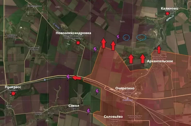Вооруженные силы Российской Федерации (ВС РФ) севернее Очеретино расширили зону контроля. Это касается и подступов к Новоалександровке, и продвижения в сторону Калиново. Противник оказывает отчаянное сопротивление. Вместе с этим фиксируется продвижение на запад от Очеретино - в сторону Прогресса.