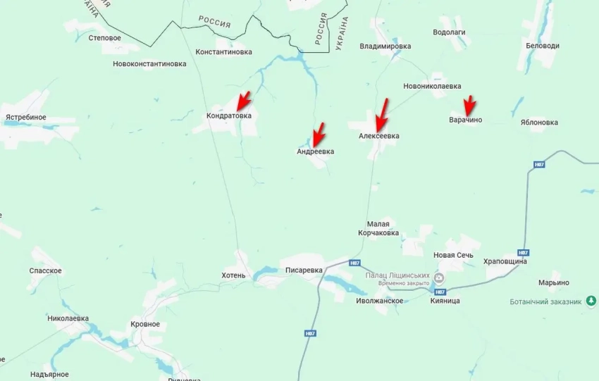 Между тем подразделения группировки «Север» продолжают продвижение на Сумском направлении, на всех участках продолжаются ожесточенные бои. Есть продвижение в районе Грабовского, там наши имели успех на двух участках фронта. Восточнее Алексеевки и южнее Новониколаевки российские войска заняли ряд лесополос и значительную часть населённого пункта Варачино, в Андреевке наши дошли до центра села, также идет штурм Кондратовки.