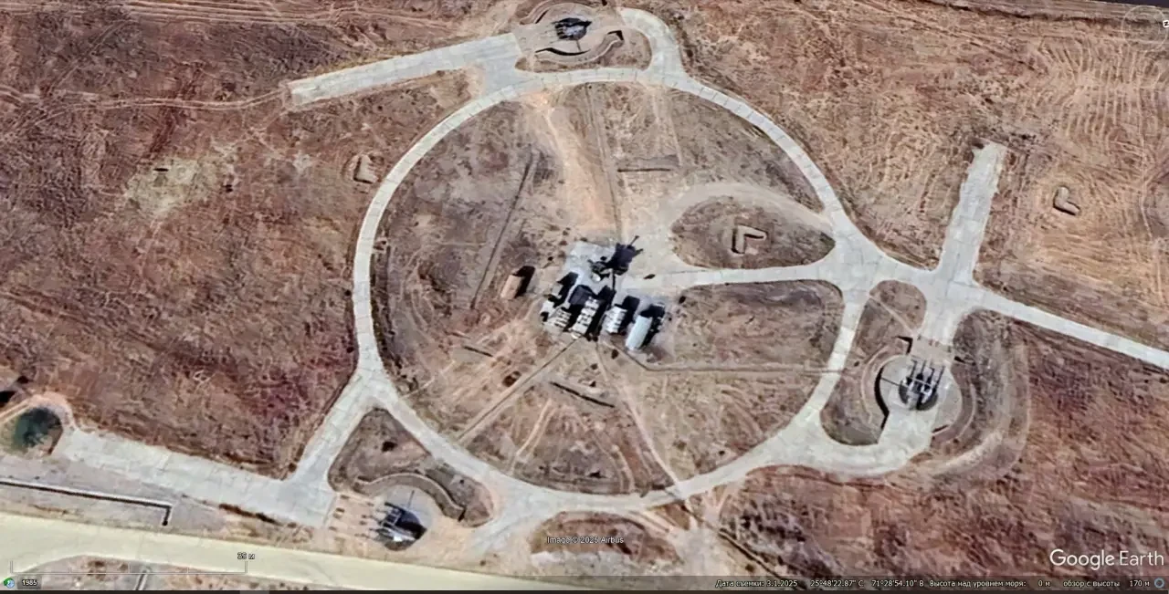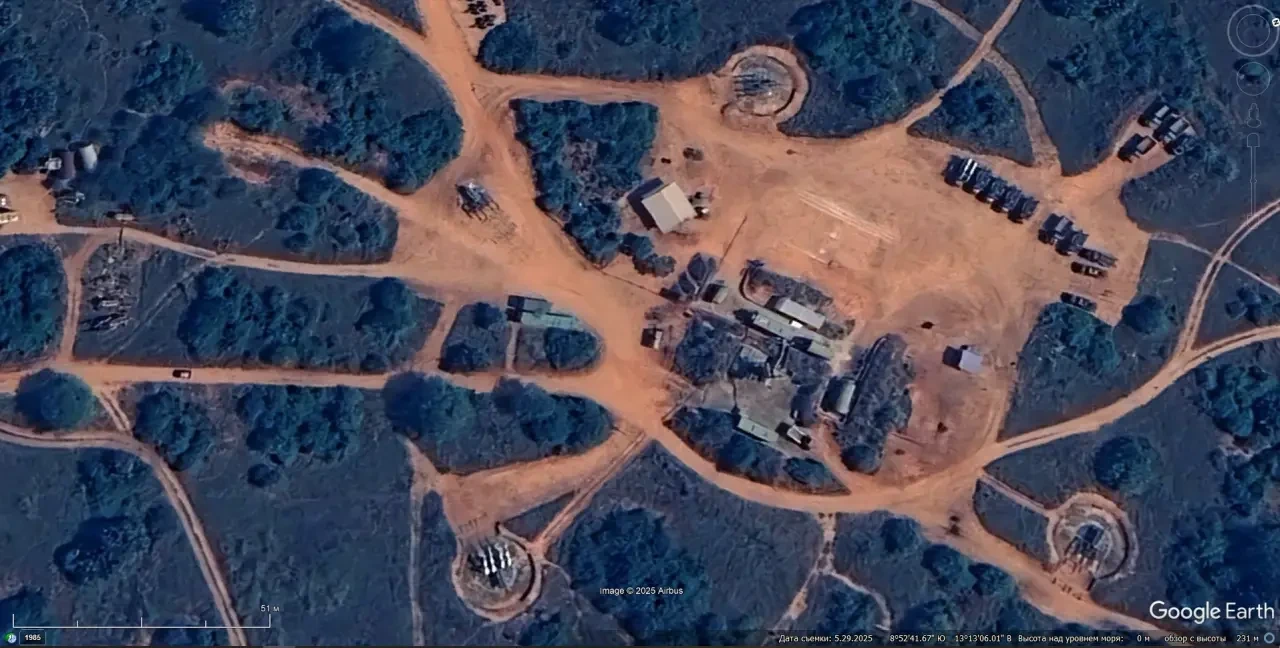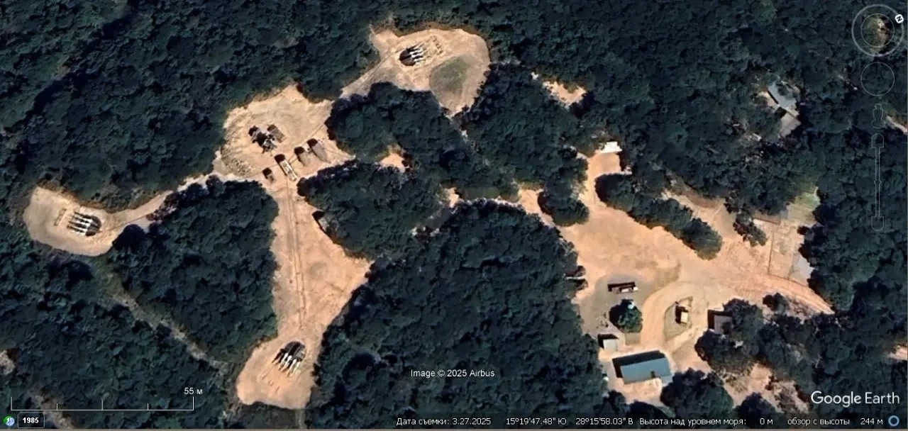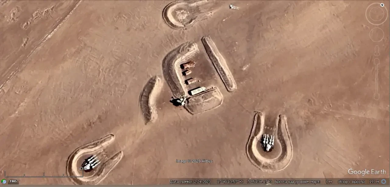 Спутниковый снимок Googlе Eаrth: позиция ЗРК С-125М1А на западной окраине порта Намибе. Зенитных ракет на пусковых установках нет. Снимок сделан в марте 2025 года