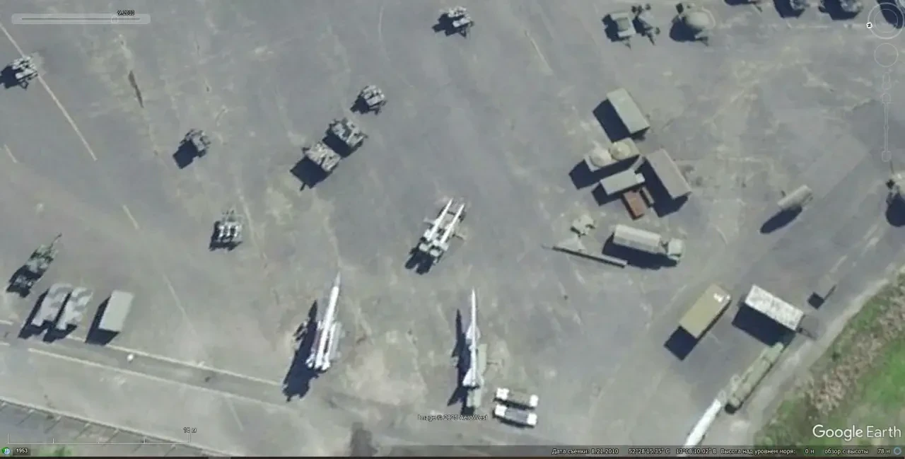 Спутниковый снимок Googlе Eаrth: макеты пусковых установок ЗРК С-125 на полигоне Спейдадам