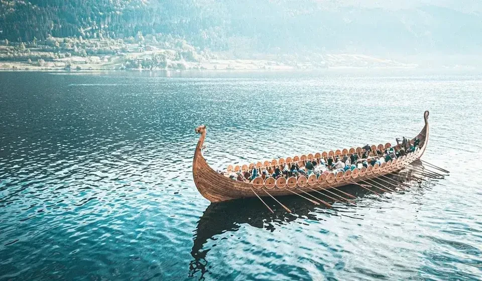 Центр викингов Сагастад, Нордфьордейд, Норвегия. Самая посещаемая достопримечательность этого города — центр викингов Сагастад, в котором находится реконструированный драккар викингов длиной 30 метров — «корабль из Миклебуста», построенный более 1150 лет назад, и самый большой драккар викингов, когда-либо обнаруженный в Норвегии