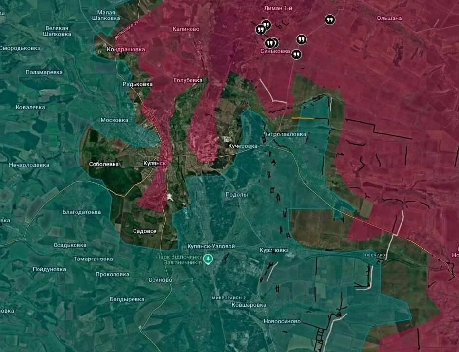 Из Купянска приходит противоречивая информация. Командование ВСУ заявляет, что зачистка города завершена, осталось 100 российских солдат, скрывающихся в подвалах в центральной и северо-западной частях. При этом ВСУ обстреливают городскую больницу, которую удерживают наши бойцы. Российские источники утверждают, что наши подразделения уничтожают врага в городе. Известно, что ВСУ кратно нарастили воздушную разведку, чтобы вычислить российские пункты управления БПЛА и позиции артиллерии. На западе от города ВСУ возводят инженерные сооружения и оборонительные узлы.