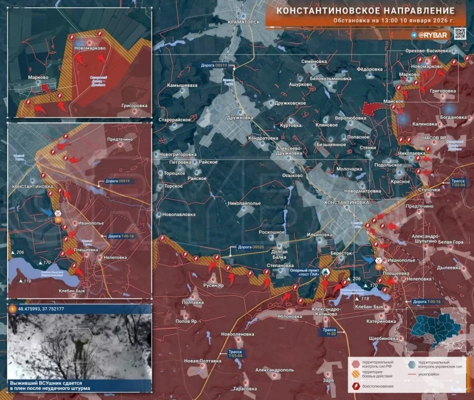 На северном фланге Константиновского направления российские войска продолжают продвигаться вперёд, отмечая локальные успехи, сообщил Telegram-канал "Рыбарь". В то же время на ряде участков фронта ситуация остаётся сложной, особенно в районах, контролируемых противником.