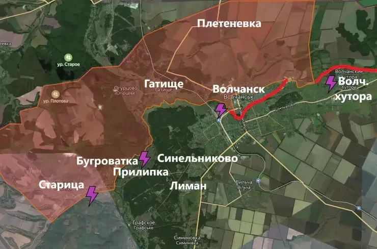 Карта боевых действий на Украине по состоянию на утро сегодняшнего дня, 21.05.2024