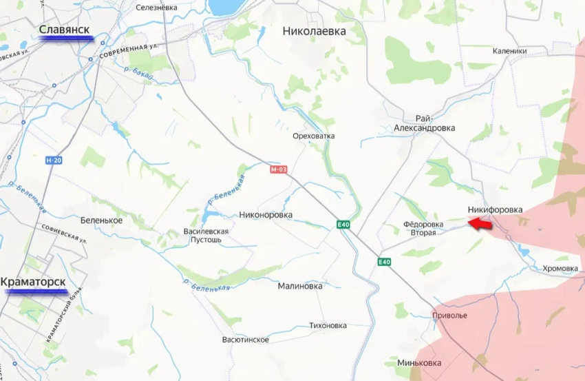 Но и это ещё не всё. Порядка 7 кв. км территории переведены ВС РФ под контроль к востоку от Славянска. Там российские войска вошли в Никифоровку, освободив от противника южную часть этого села, расположенного в 14 км от восточной окраины Славянска и примерно на том же расстоянии от Краматорска.