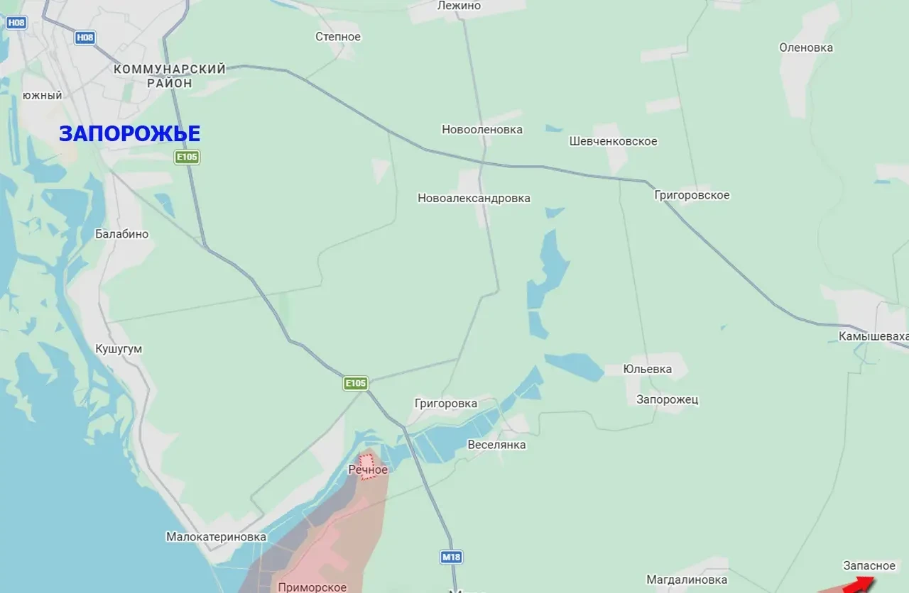 В Запорожской области создалась ситуация, при которой под огневой контроль взяты пути снабжения сил противника на северном берегу реки Конка – в районе её впадения в Днепр (Каховское водохранилище). В первую очередь это участок автомобильной дороги Е105 (М-18) от Конки до Запорожья.