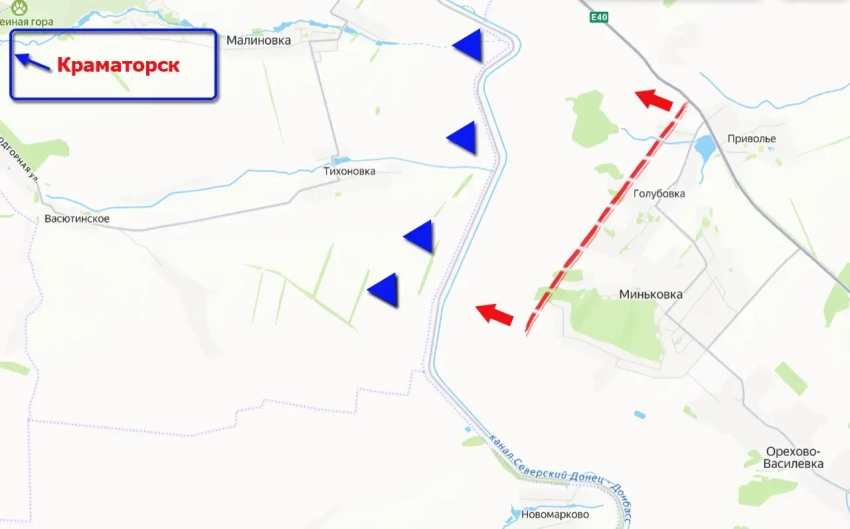Противник пытается использовать канал на этом участке фронта как естественную преграду, понимая, что после его форсирования ВС РФ могут за считанные дни прорваться в Краматорск. Однако для противника в этом плане есть значительные минусы. Во-первых, ВС РФ уже перешли на западный берег канала чуть южнее - у Новомарково, во-вторых, сам канал сейчас сложно назвать полноценной водной преградой как минимум из-за сделавших своё дело морозов. Мало того, выстраивать свою оборону у канала ВСУ приходится под огнём со стороны российских Вооружённых сил.