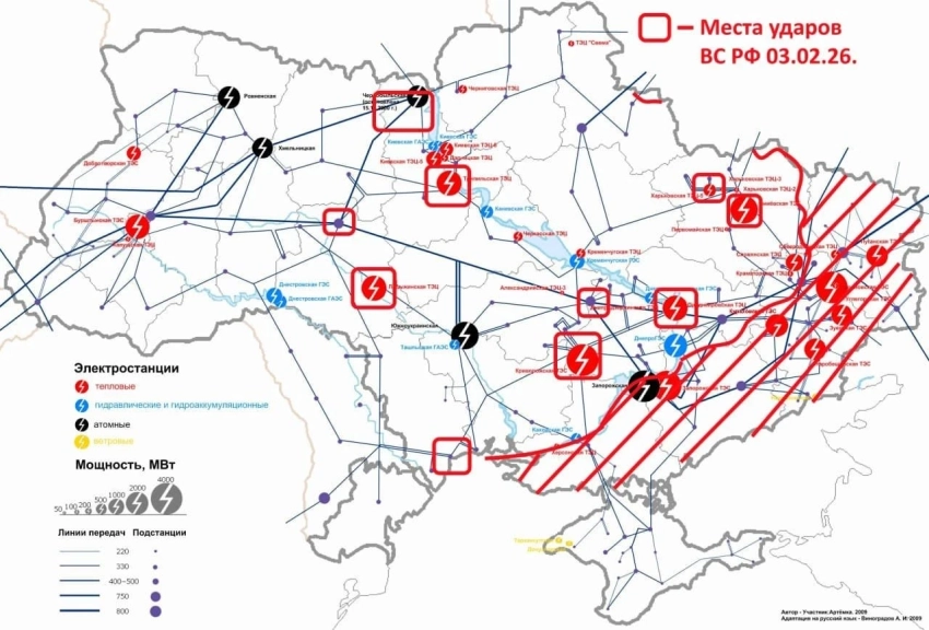Раскрыты масштабы последствий удара ВС РФ по энергообъектам на Украине 3 февраля: свежие подробности