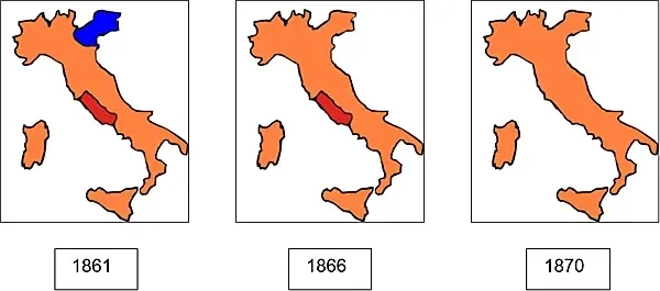 Карты Папского государства (stato pontifico) в последнее десятилетие годы его существования. Само Папское государство существовало с 756 по 1870 год, но после присоединением Рима к объединенному Итальянскому королевству и выводу французских войск, государство перестало существовать. Тогдашний Папа Пий IX в знак протеста против лишения его власти объявил себя «узником в Ватикане» и проклял короля за присоединение его римских владений к Италии