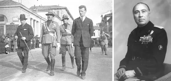Первый секретарь (в 1931-1939 годах) Национальной фашистской партии и начальник штаба фашистской милиции («чернорубашечники») Акилле Стараче (Achille Starace/1889-1945). Это один из первых итальянских фашистов и верный сторонник Муссолини. В 1935 году он взял отпуск, чтобы в звании полковника участвовать в итальянском вторжении в Эфиопию. Являлся главой Олимпийского комитета Италии. 29 апреля 1945 года в Милане он был схвачен итальянскими партизанами-антифашистами и убит, а его тело было выставлено на всеобщее обозрение рядом с телом Муссолини и других фашистских лидеров