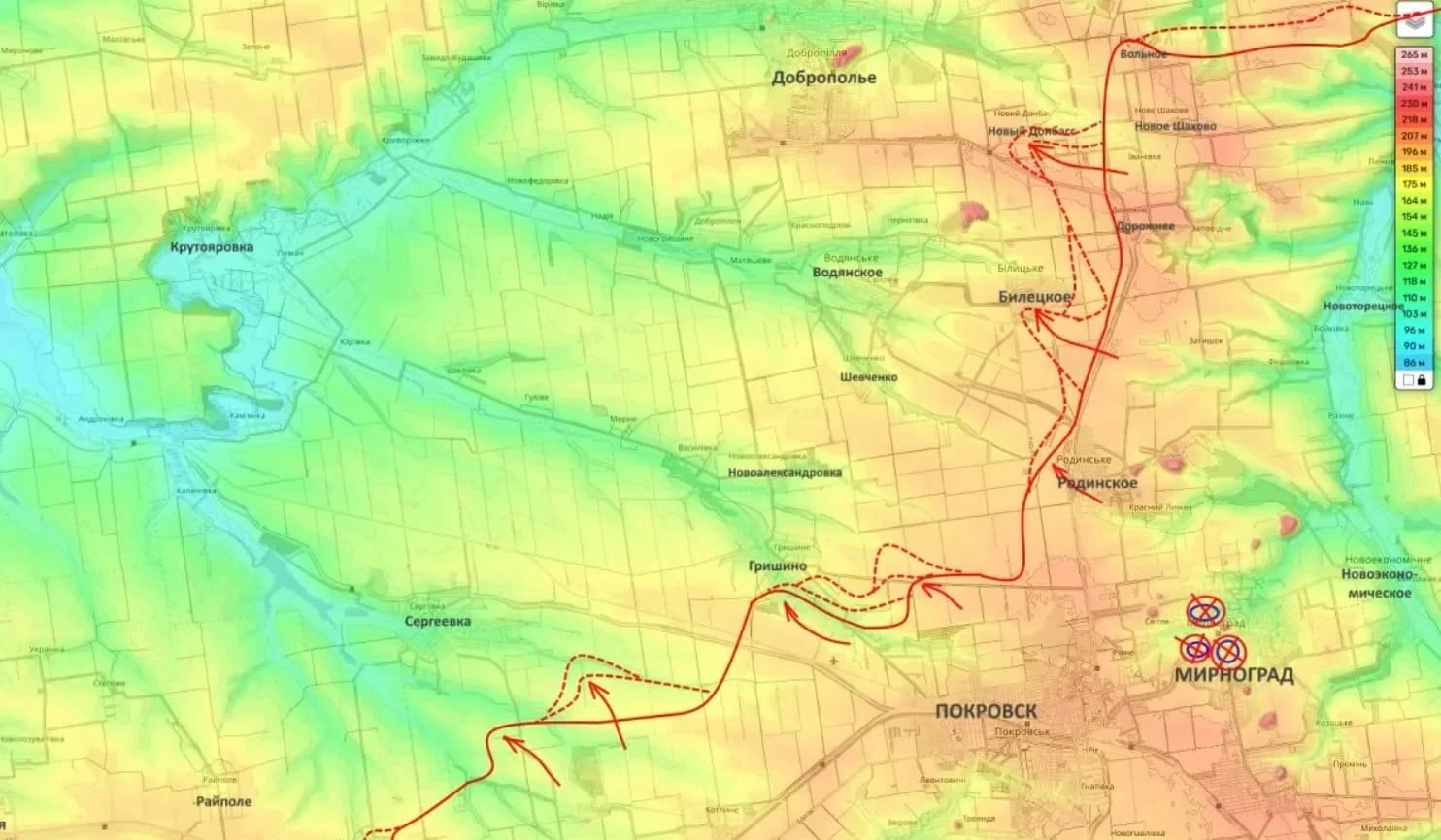 Подытоживая, Репке опубликовал карту местности, на которой указал, где реально проходит линия фронта (Красноармейск в тылу ВС РФ).