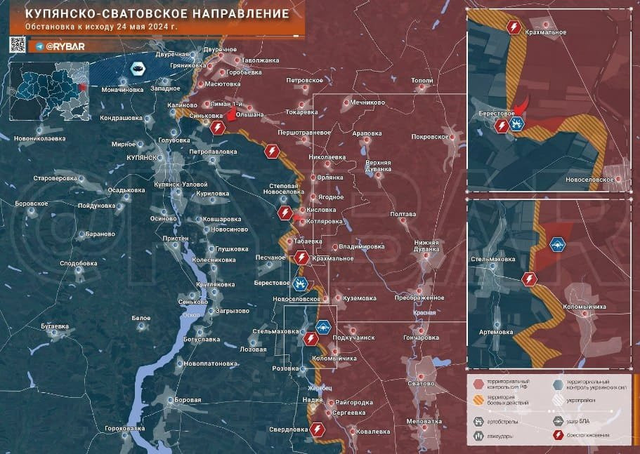 Последние новости СВО на 25 мая 2024. Карта боевых действий на Украине на сегодня, военная сводка
