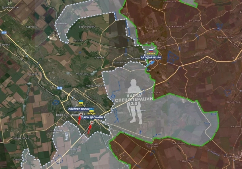 На Константиновском направлении российские войска наступают со стороны Берестка к западной части города, отмечено продвижение в центре самой Константиновки и занятие новых позиций к югу от железнодорожного вокзала.