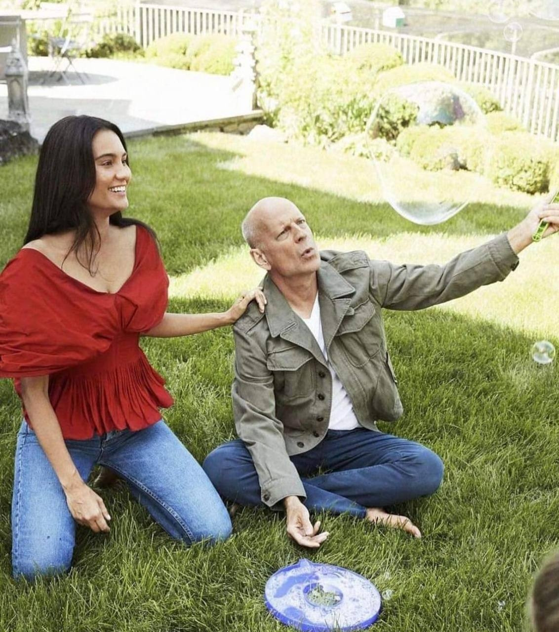 Эмма Хеминг-Уиллис, супруга Брюса Уиллиса, поделилась трогательными фото своего больного мужа, который мужественно борется с тяжелой болезнью. На фотоснимках, размещенных в соцсетях, 68-летний артист изображен сидящим на лужайке и играющим с мыльными пузырями под присмотром возлюбленной.