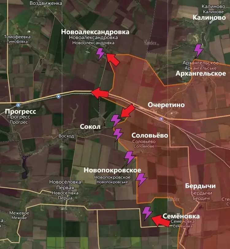Западнее Семёновки есть продвижение ВС РФ. Вообще же на этом участке подразделения Армии России уже подобрались к Новопокровскому, однако, штурм населённого пункта пока что не начался.