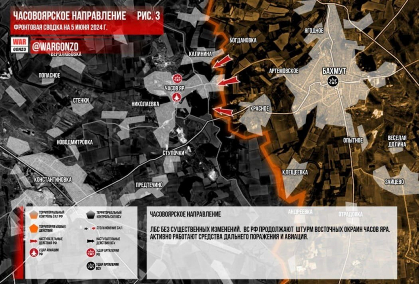 Новая карта боевых действий в зоне СВО на Украине по данным на 05.06.2024