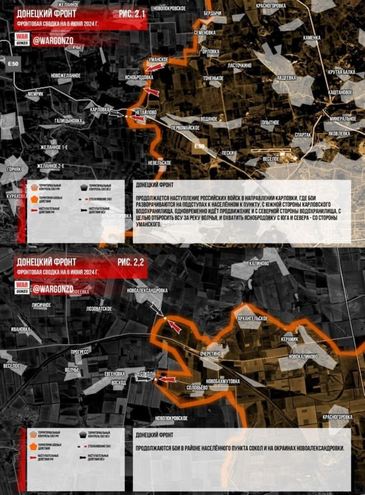 Ситуация под Авдеевкой на сегодня. Карта боевых действий на 6 июня 2024, бои не стихают у Нетайлово-Уманское