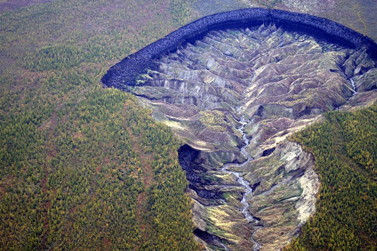 Ученые из МГУ им. М.В. Ломоносова опубликовали данные, указывающие на стремительное увеличение термокарстовой впадины в Верхоянском районе Якутии, известной как «сибирские врата в ад».