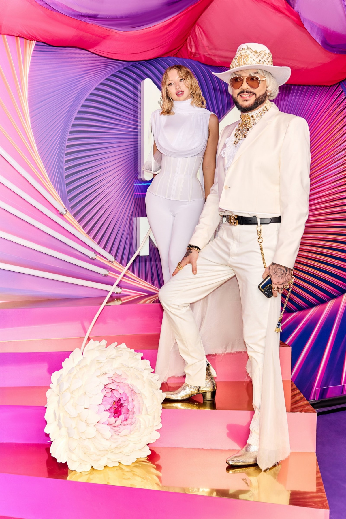Филипп Киркоров сменил стрижку. Он выбрал белый костюм и множество украшений.
