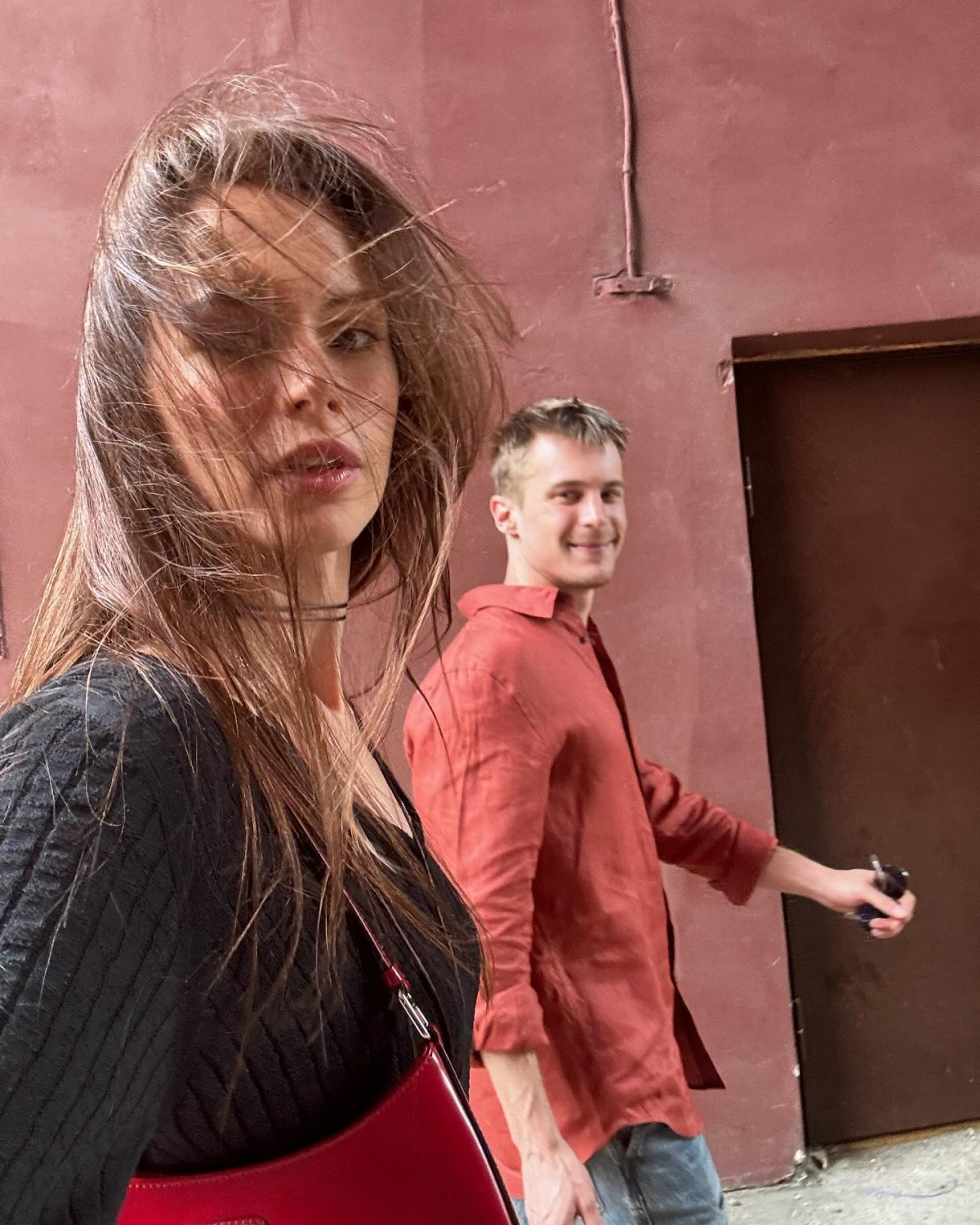 На фото Иван в яркой красной рубашке, а Диана в стильном черном топе с декольте.