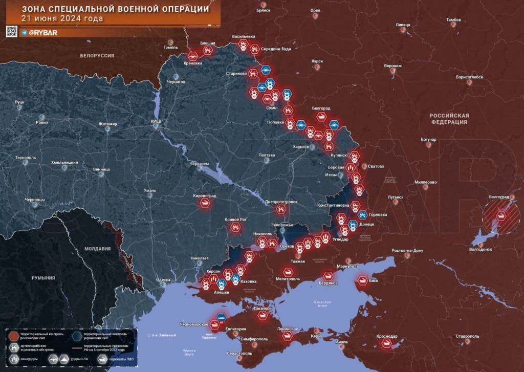 Новая карта боевых действий на Украине на 22 июня 2024: обзор ситуации на фронтах спецоперации
