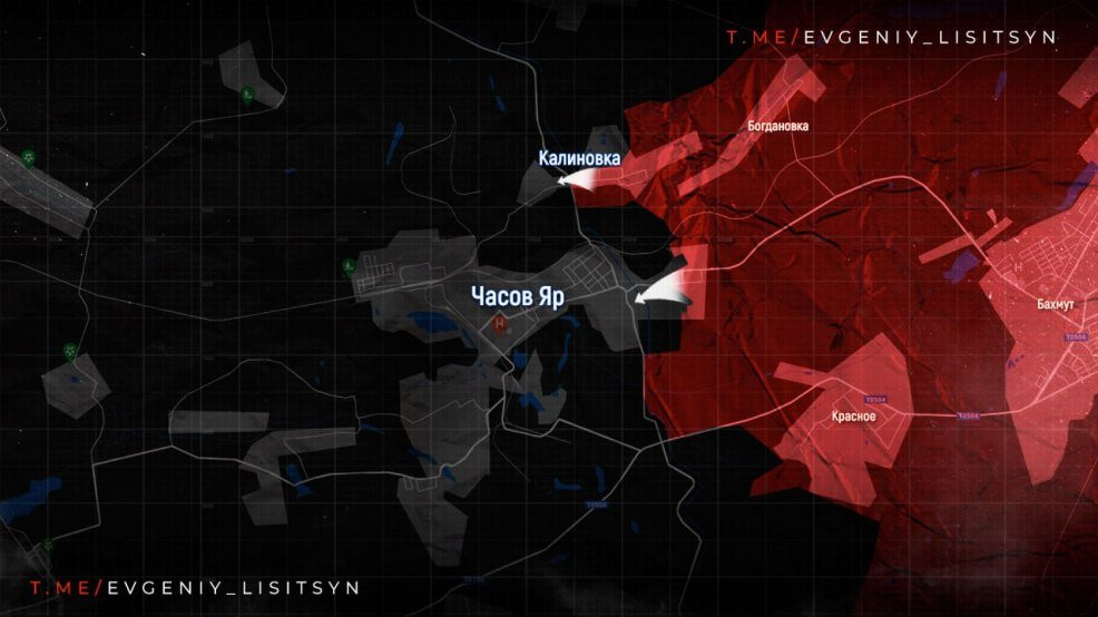 В восточной части Часов Яра продолжаются бои. Противник решает задачу замедления продвижения Армии России, насыщает личным составом западную часть города, выстраивает оборону вдоль водоканала Северский Донец-Донбасс.
