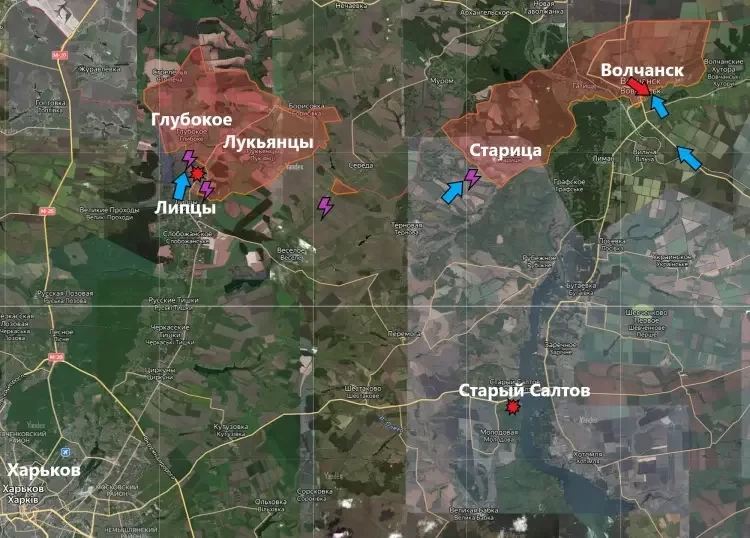 В районе Липцев враг по-прежнему собирает силы и атакует в направлении Глубокого. Часть атак заканчивается ещё на стадии сбора - когда по позициям ВСУ прилетают ФАБы с УМПК. Остальные силы противника разбиваются уже при попытке атак на позиции ВС РФ вблизи Глубокого, пишет PulsePen.