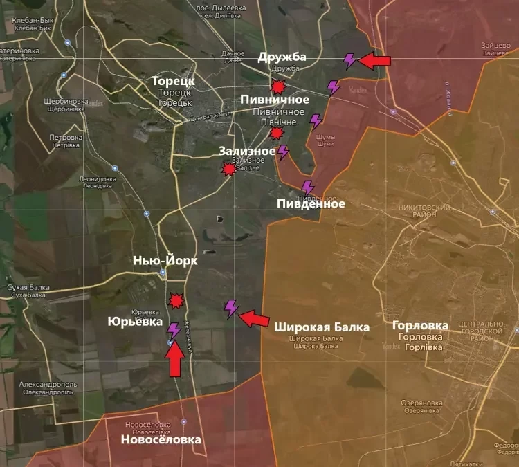 «Группировка войск „Центр“ продолжает своё неожиданное наступление, прорвавшись от Горловки к Торецку (Дзержинску). С юга наши войска ворвались в Нью-Йорк (Новгородское) и продолжают штурм города», - сообщают авторы Telegram-канале "Операция Z: Военкоры Русской Весны".