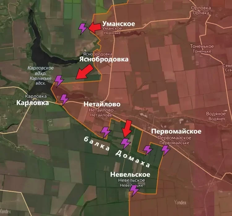 На Селидовском направлении подразделения Армии России серьёзно продвинулись к юго-западу от Яснобродовки. Бои идут по обеим сторон юго-восточного выступа Карловского водохранилища, а также в районе Балки Домаха и в Невельском.