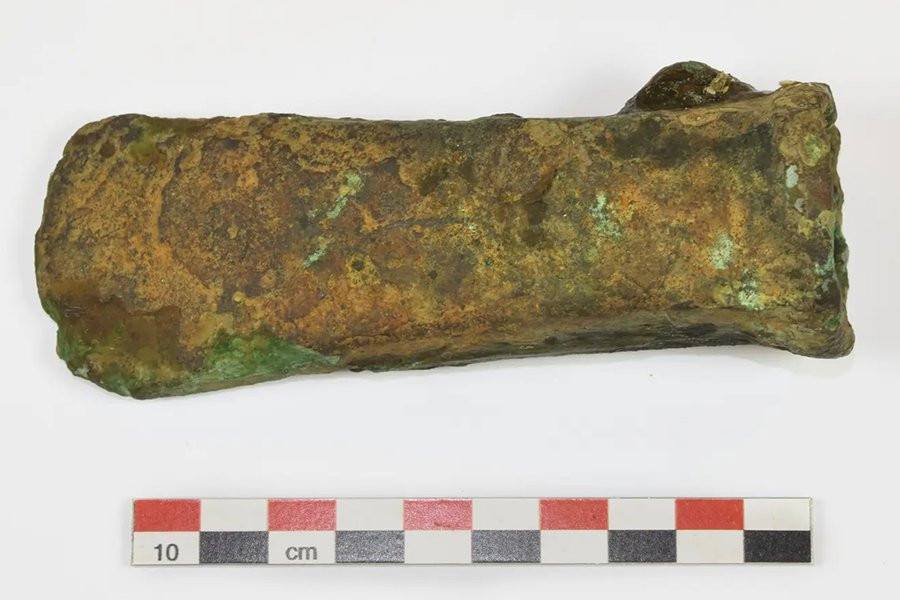 Он извлек предмет, и эксперты его осмотрели. Это полый топор с гнездом, также известный как кельтский. Это было доминирующее лезвие топора скандинавского бронзового века (1800-500 гг. до н. э.). Первоначально он был установлен на наклонном деревянном древке, а наклонный конец дерева вставлялся в открытый конец головки топора. Это была эффективная и экономная конструкция, которая позволяла выполнять наибольшую функцию с наименьшим количеством дорогого и труднодоступного металла. Он имеет длину 11,5 сантиметра, ширину почти 5 сантиметров в самой широкой точке (изогнутый срез лезвия) и весит чуть более 300 граммов.