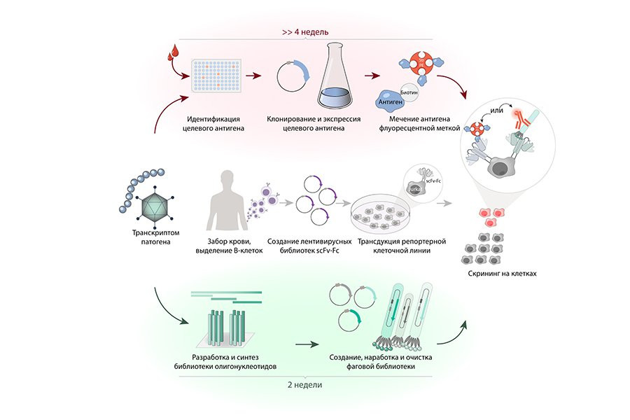 Для лечения вирусных инфекций у людей с ослабленным иммунитетом и пожилых пациентов используют терапевтические антитела — белки, которые помогают иммунной системе бороться с заболеваниями. Например, существует несколько препаратов на основе антител для лечения COVID-19. Часто такие молекулы выделяют из сыворотки крови выздоравливающих пациентов. В ней содержатся В-клетки, которые, когда распознают что-то опасное — например, бактерию или вирус, — производят антитела для защиты организма. Однако выделение потенциально терапевтических моноклональных, то есть индивидуальных, антител затруднено из-за крайне низкой доли специфичных к интересующему вирусу В-клеток в крови. Кроме того, при стандартном подходе поиска моноклональных антител, эффективных против нового малоизученного патогена, обычно требуется значительное время (более полугода) — и некоторые вирусы, например, SARS-CoV-2, успевают мутировать. В результате этого участок, который изначально распознавали антитела, изменяется, и защитные молекулы теряют способность нейтрализовать патоген. Поэтому необходим более быстрый и эффективный способ получения антител, в том числе против быстро мутирующих вирусов.