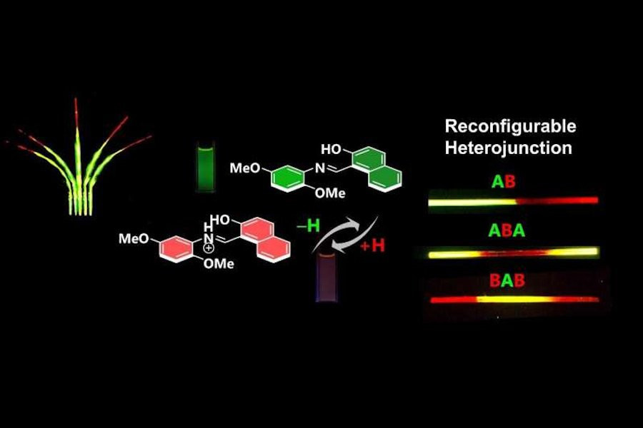 Игольчатые органические кристаллы, микро- или сантиметровой длины, долгое время использовались в качестве средств для преобразования оптических сигналов. Однако новый кристалл, названный кристаллом Шиффа, сочетает в себе несколько уникальных характеристик, включая возможность регулирования цвета излучения от зеленого до темно-красного путем контролируемого воздействия кислоты.