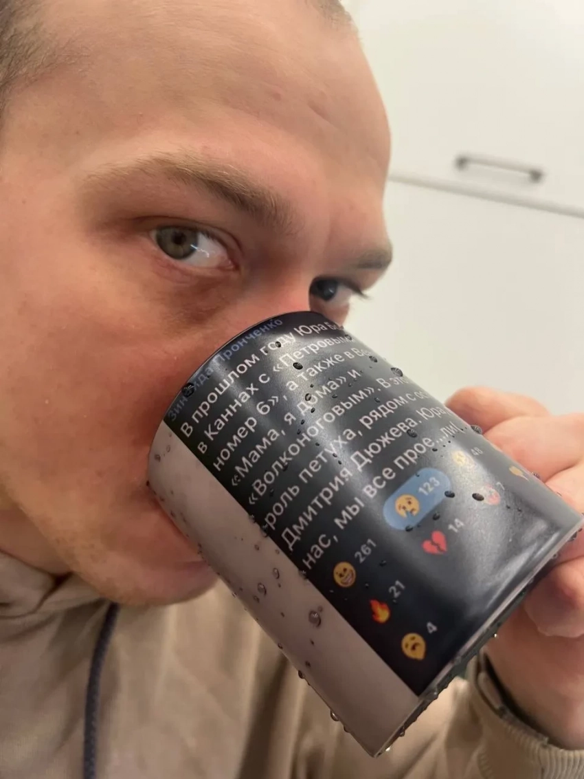 Зинаида Пронченко показала фото Юры Борисова, который пьёт из кружки с её старым постом, где она предрекает ему конец карьеры