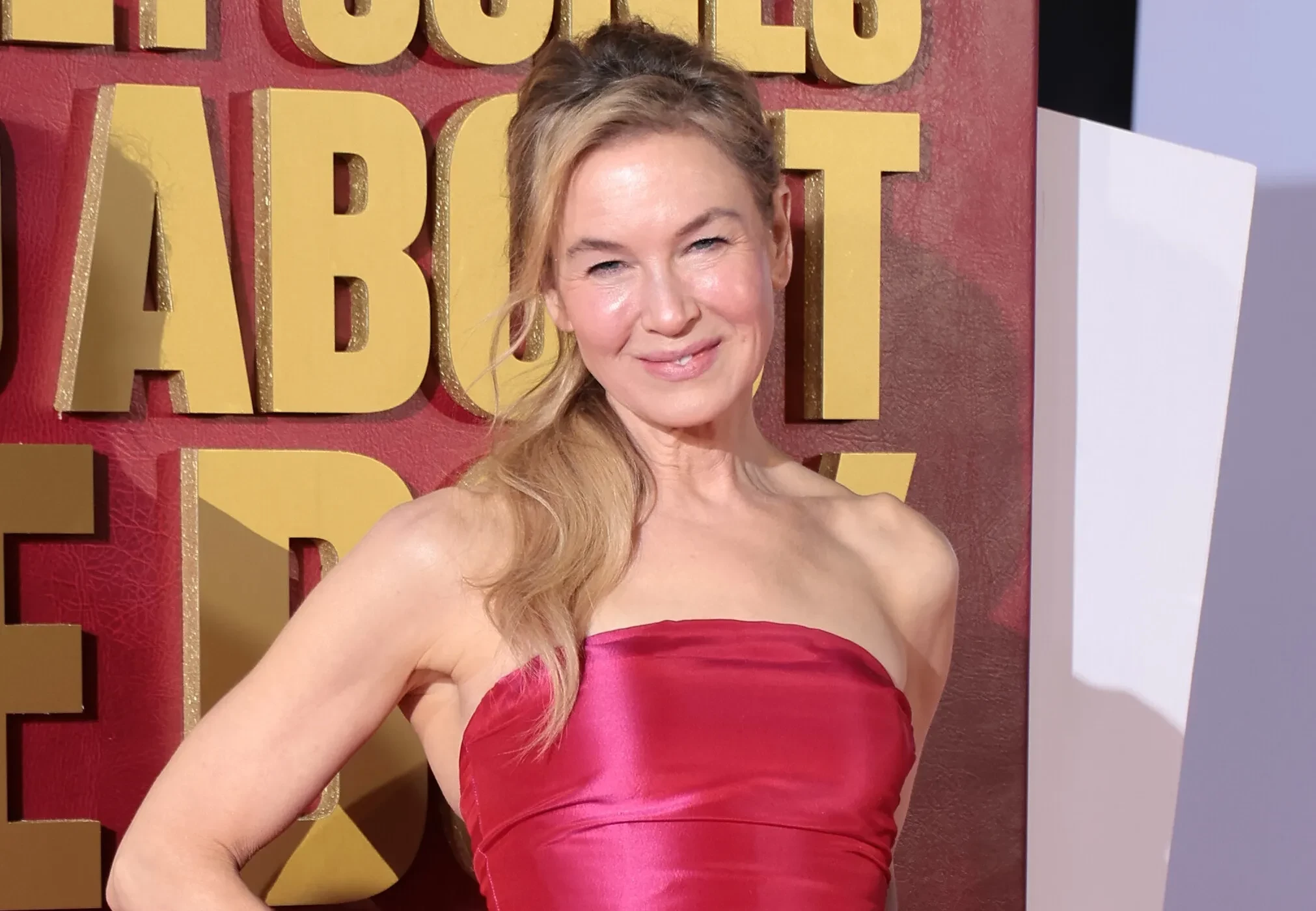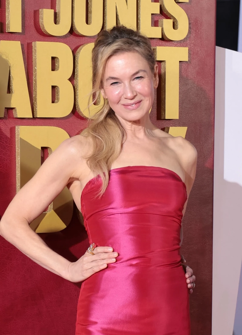 55-летняя Зеллвегер выбрала для мероприятия атласное платье ярко-розового оттенка со шлейфом. Образ дополнили лакированные туфли-лодочки в тон платью. Актриса отказалась от аксессуаров и украшений, кроме массивного золотого кольца на левой руке.