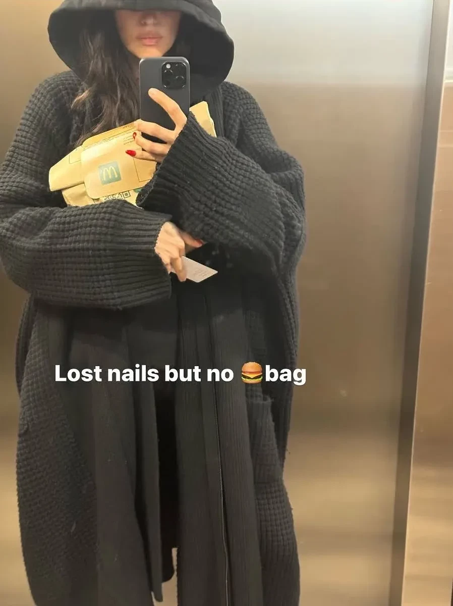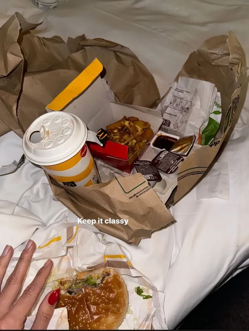 Ирина Шейк/Фото: irinashayk/Instagram*Шейк прокатилась по Парижу, сделала классическое фото на фоне Эйфелевой башни, посмотрела на Лувр из окна машины, а после отдохнула в отеле. Пока другие звёзды ходят по модным парижским ресторанам, обладательница одной из самых сексуальных фигур в мире заказала себе в номер "Биг Мак" и наггетсы из "Макдоналдса". "Назад дороги нет", — подписала скриншот заказа модель. Ирина также отметила, что потеряла несколько накладных ногтей. "Потеряла ногти, но не пакет с едой", — иронизирует Шейк.