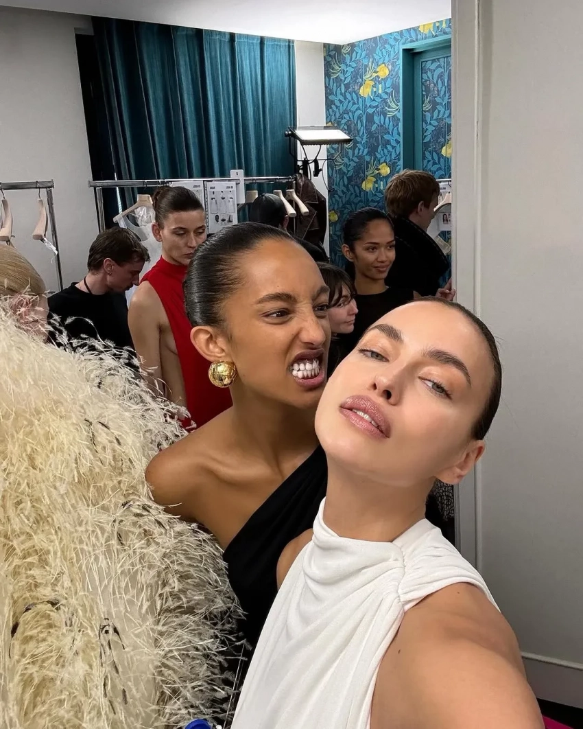 Супермодель и бывшая возлюбленная Брэдли Купера в этом сезоне приняла участие всего в одном кутюрном показе Celia Kritharioti, а несколькими днями ранее прошлась по подиуму на показе коллекции прет-а-порте Jacquemus. Ирина поделилась закулисными снимками с показов, селфи с Моной Тугаард, а также показала, чем занималась помимо работы.