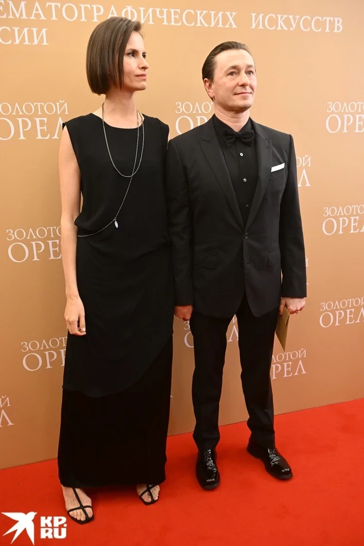 - Распространения ошибка в образе Сергея Безрукова - «разный» черный, соревнующийся друг с другом. Брюки и рубашка смотрятся более насыщенными и контрастными по отношению к пиджаку, из-за чего пиджак кажется не особо респектабельным. А вот образ супруги Сергея безукоризненно современный. Очень удачно сделан выбор в пользу платья асимметричного кроя. Отдельно хочется обратить внимание на трендовые украшения на шее Анны и моно-серьгу. И ещё один модный акцент образа - геометричные босоножки.