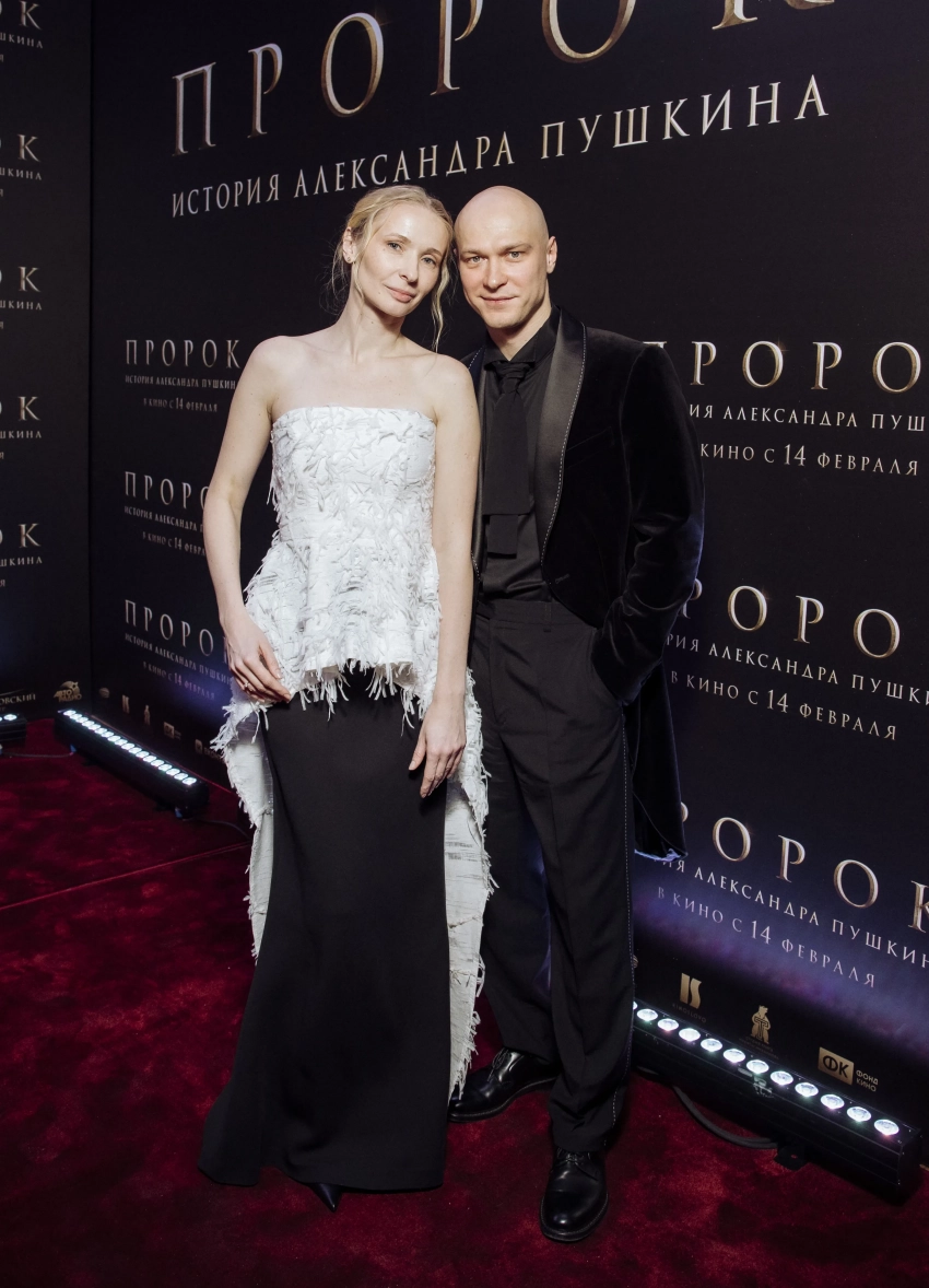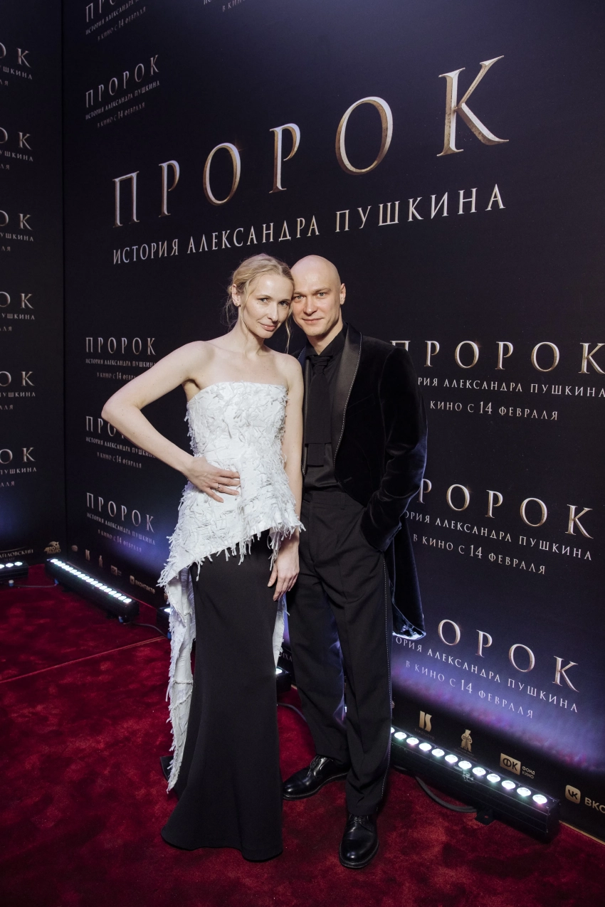 32-летний Борисов в составе съёмочной группы презентовал в Санкт-Петербурге ленту "Пророк", в которой сыграл главную роль — Александра Пушкина. На показе в Михайловском театре он предстал в чёрном бархатном костюме и рубашке в тон. 33-летняя Анна выбрала наряд из чёрной юбки в пол и белого корсета с длинным подолом.