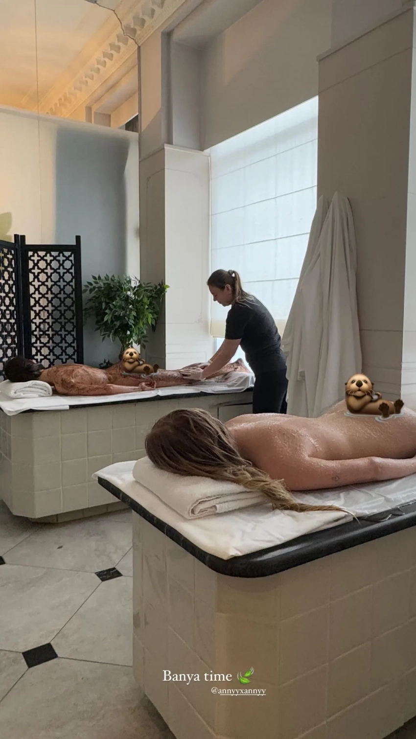На одном из опубликованных кадров Киба и её подруга предстали обнажёнными во время процедуры скрабирования. На другом снимке они обе надели специальные шапки для бани. "Время для бани" — подписала Аврора новые фотографии.