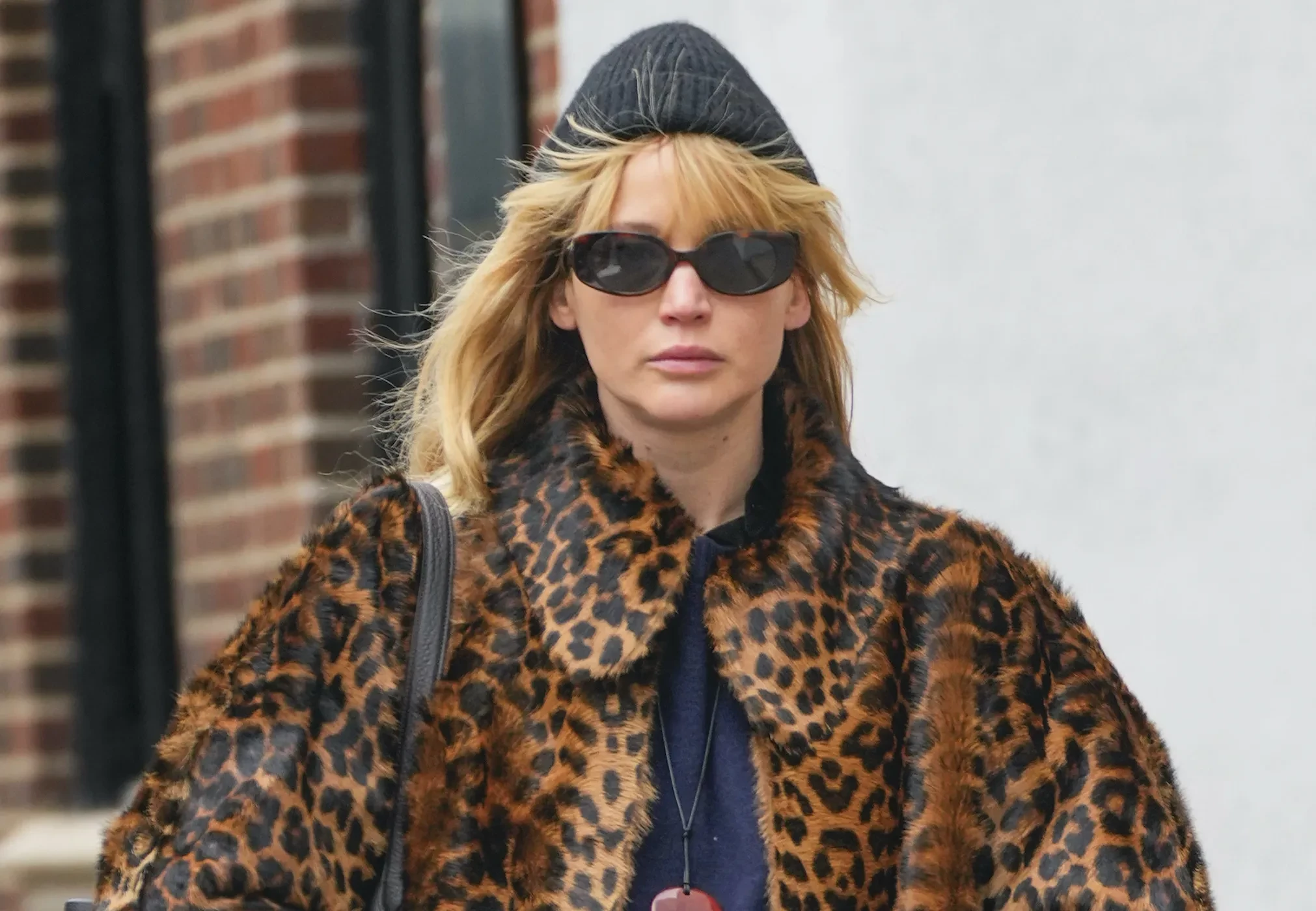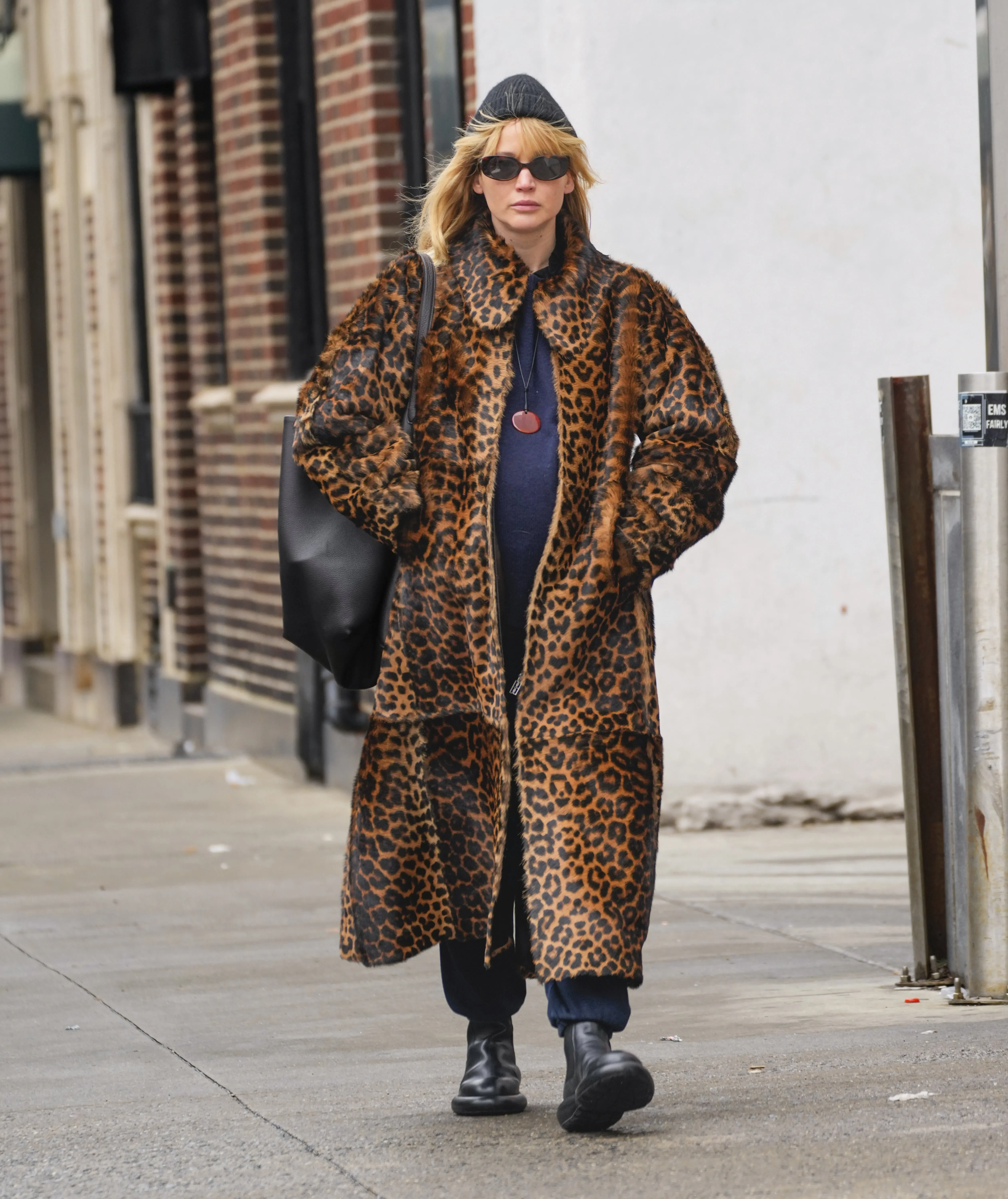 Беременная Дженнифер Лоуренс гуляет по Нью-Йорку в леопардовом пальто из шерсти пони