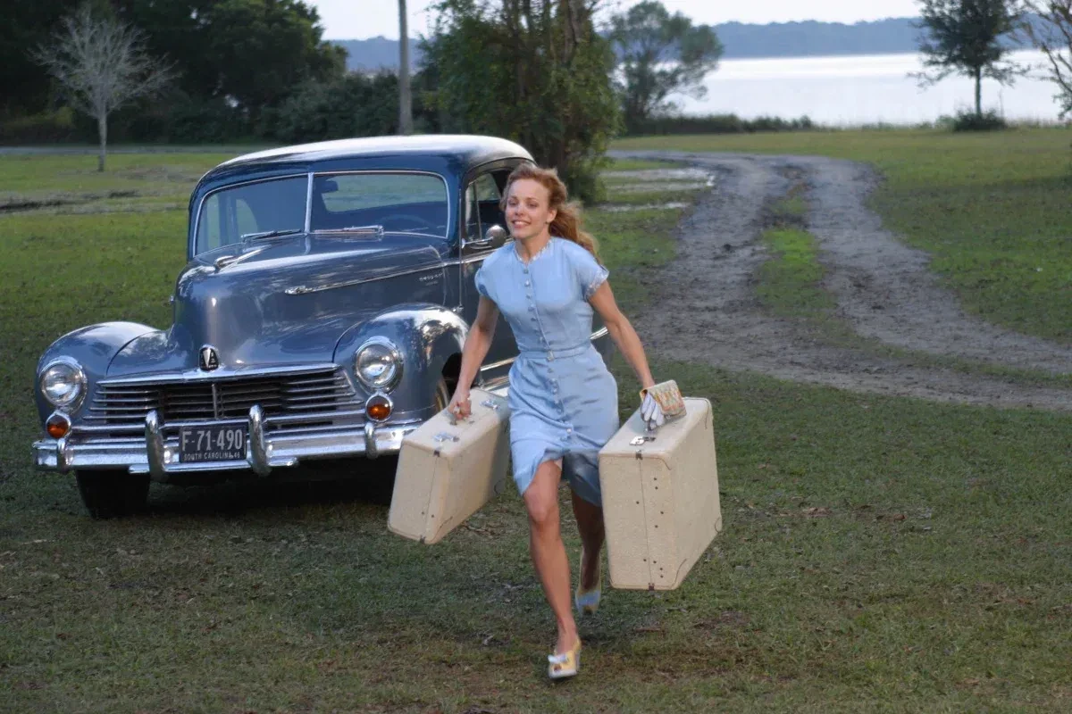 Райан Гослинг и Рэйчел МакАдамс в фильме "Дневник памяти" (2004)/Фото: кадр из фильма/New Line CinemaВ фильме "Дневник памяти", одном из самых романтичных, героиня Рэйчел МакАдамс, Элли, одевалась модно по меркам 1940-х. Пожалуй, больше всего Элли запомнилась зрителям в голубом платье приталенного силуэта, когда она целовалась под дождём с любовью своей жизни Ноем (Райан Гослинг). Актёры не просто сыграли влюблённых, но и закрутили роман на съёмках, который продлился целых четыре года. Эта сцена стала культовой и даже получила награду MTV. А повторить образ Элли легко с помощью похожего голубого платья в модный цветочный принт Befree или Gate31.